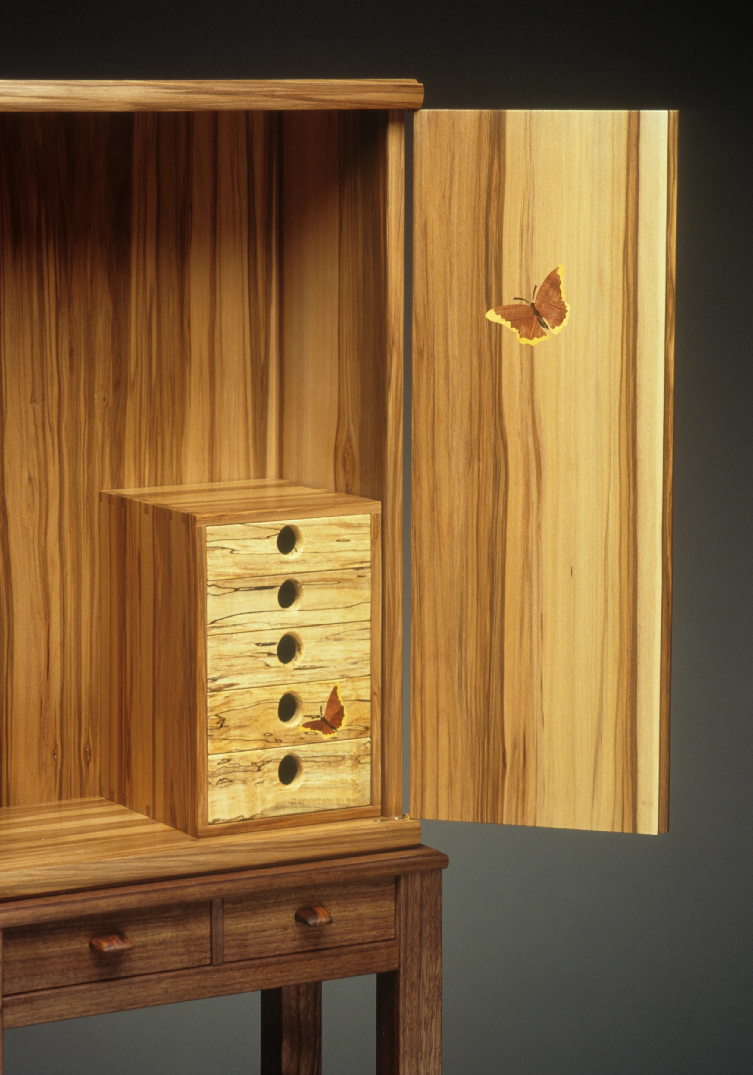 Using skills and techniques previously learned in the fundamentals section, the solid wood project encourages students to design and build their own furniture piece is the second section. Students develop basic drawing skills and learn to explore ideas on paper before making a full-size mock up to determine proportions and aesthetics of their project. The careful selection of lumber for the project is revisited with particular attention to the use of wood grain as it affects the balance and aesthetics of the project. Special attention will be focused on cabinet joinery and construction details. Highly effective and accurate methods of joinery such as hand-cut dovetails and doweling will be taught. The patient process of accurately building and fitting dovetailed drawers as well as making and hanging cabinet doors using knife hinges will be covered in great detail. In addition to joinery and cabinetmaking details taught in this section, special attention is focused on surface preparation using the fine wooden hand planes built earlier in the class. Shellac as well as oil finishes will be covered. Throughout this process, a sensible method of work will be emphasized which encourages success.